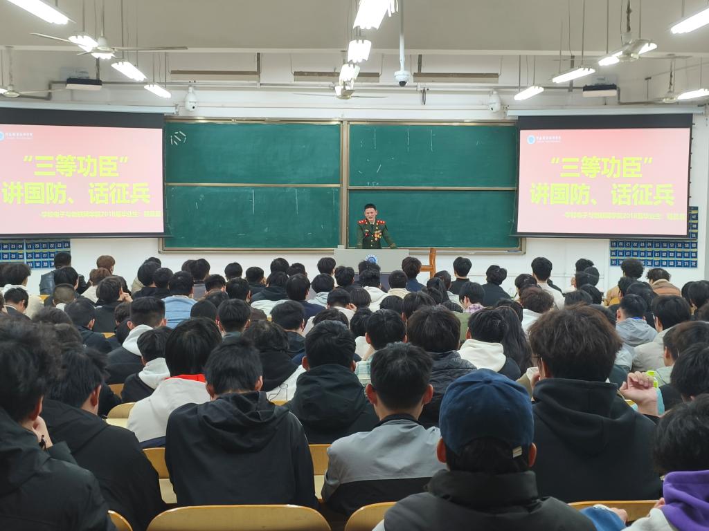 近日,学校2018届毕业生、“战备训练三等功”获得者程晨晨荣归母校,与学弟学妹们分享军旅成长经历,宣讲国防征兵政策。学校党委学生工作部、电子与物联网学院相关同志参加活动。