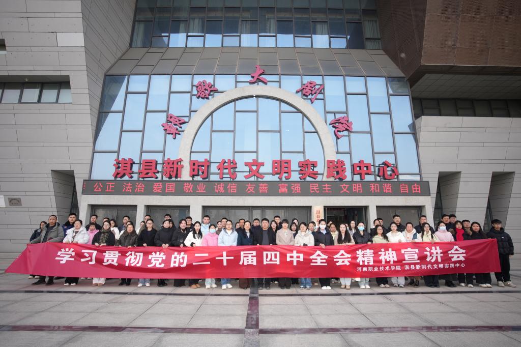 为深入学习宣传贯彻党的二十届四中全会精神,根据校党委统一部署,日前,学校党委宣传部联合马克思主义学院走进淇县新时代文明实践中心开展专题宣讲活动,淇县各级文明单位干部职工参加宣讲学习。