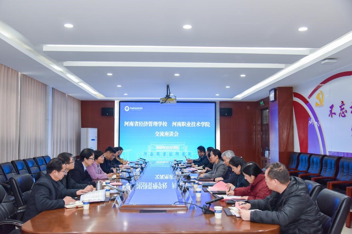 12月19日上午,河南省经济管理学校党委书记贺望琢一行来校考察交流。校党委副书记、工会主席田华,校党委委员、纪委书记盛兴文出席座谈会,双方相关单位负责人参加。