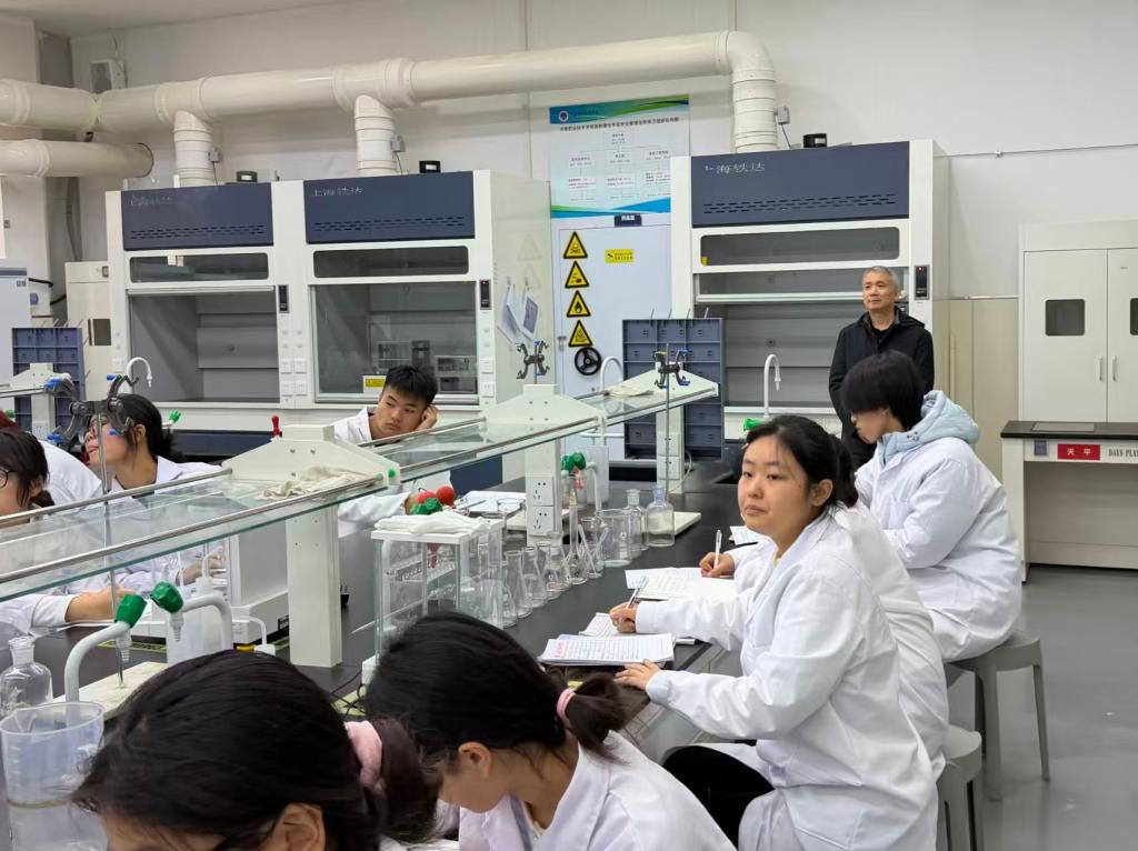 在合鼎楼9楼实践教学场所,盛兴文先后听取了食检251班谢昕讲授的《化学实验技术实训》、食检241班段飞讲授的《食品质量综合检测实训》,以及食加252班崔萌甜讲授的《基础化学》课程,并就进一步提升课堂教学设计、加强师生互动、增强教学趣味性等方面提出了指导意见。