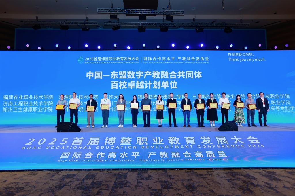 近日,2025首届博鳌职业教育发展大会在博鳌亚洲论坛国际会议中心举行。学校在大会上获评为“中国—东盟数字产教融合共同体百校卓越计划单位”,荣获“2025年‘中欧留学计划’人文交流卓越贡献奖”,获授 “职业教育对外交流与合作典型院校”称号,并收到2025年塔吉克斯坦“留学中国计划”承接院校感谢函。