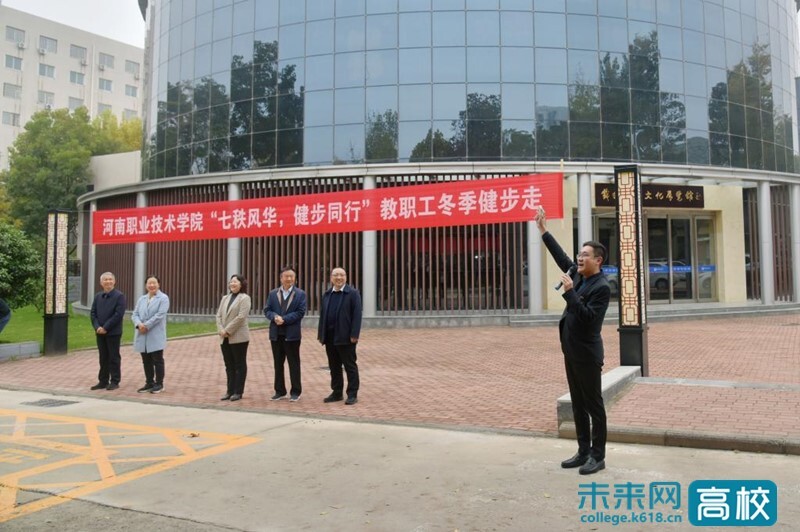 11月15日下午,河南职业技术学院举行“七秩风华,健步同行”教职工冬季健步走活动,17个分工会的750余名教职工参加活动。学校领导厉励、夏新颜、田华、李玉峰、盛兴文、鲁冬出席活动。校党委书记厉励鸣枪宣布活动开始。