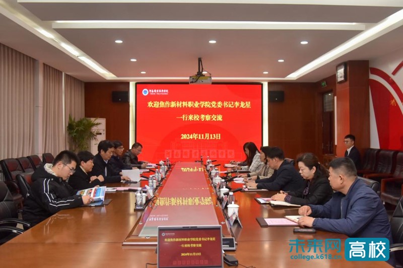 11月13日下午,焦作新材料职业学院党委书记李龙星一行5人到河南职业技术学院就校企合作、产教融合情况进行考察交流,河南职业技术学院党委副书记、校长夏新颜出席座谈会。发展规划处、教务处等部门负责人参加座谈会。