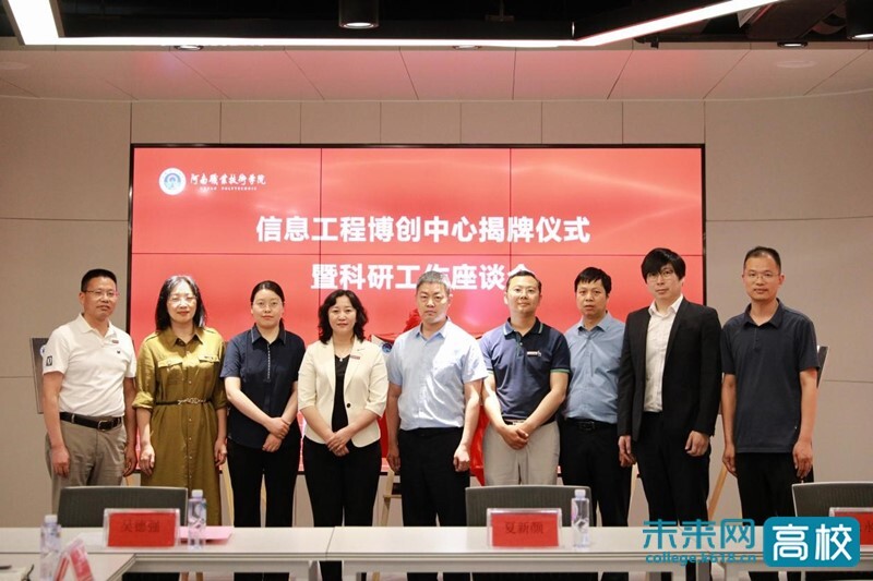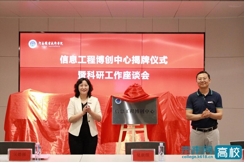 5月30日,河南职业技术学院在河职创新港大数据双创基地举行信息工程博创中心揭牌仪式暨科技工作者座谈会。学校党委副书记、校长夏新颜,校党委委员、副校长朱永宽出席活动。党委教师工作部、科技开发处负责同志,现代信息技术学院相关负责同志、博士和师生代表参加活动。