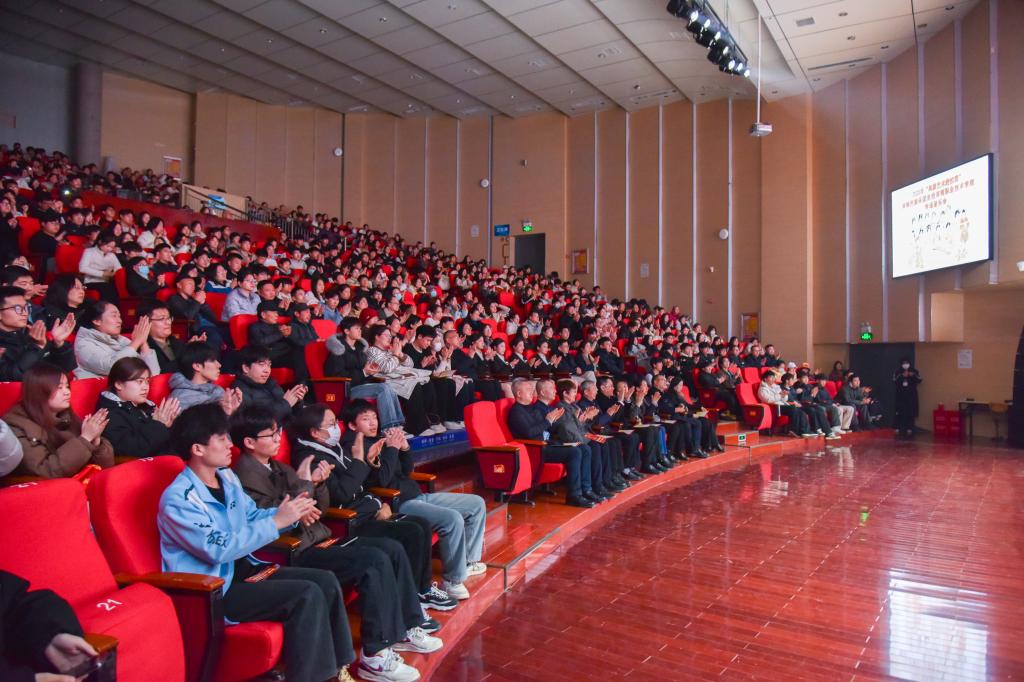 校党委副书记、工会主席田华代表学校向来校演出的河南民族乐团艺术家们致以热烈欢迎,向积极参与本次活动的全体师生致以亲切问候。她指出,71周年校庆是学校发展历程中的重要里程碑,高雅艺术作为滋养精神、陶冶情操、洗礼心灵、凝聚奋进力量的重要载体,既是致敬校庆的真挚表达,也是喜迎新年的珍贵献礼。希望全体师生从这场艺术盛宴中汲取精神养分,将收获的感动与启迪转化为建设高水平职业院校、报效国家民族的责任担当,携手谱写学校高质量发展的新篇章。
