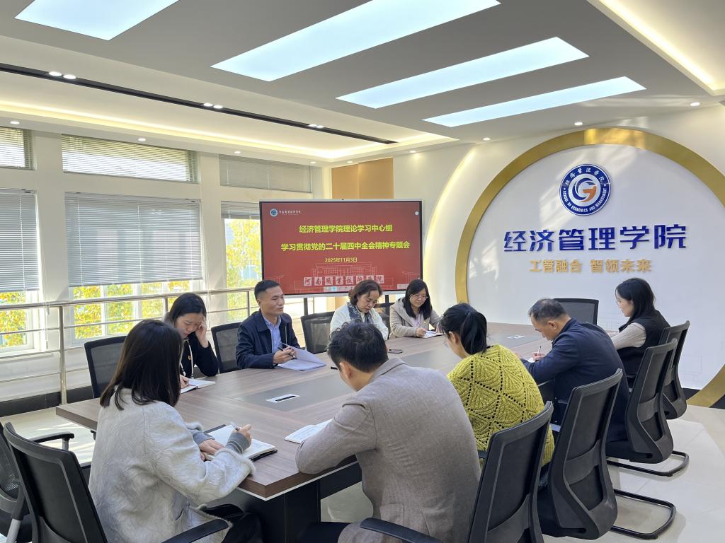 11月3日上午,学校经济管理学院理论学习中心组在笃行楼610会议室召开专题学习会,深入学习贯彻党的二十届四中全会精神。学院领导班子成员、科级以上干部参加学习。