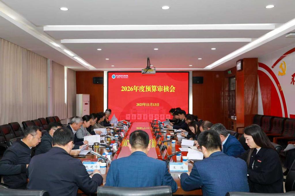 11月13日上午,学校召开2026年度预算审核会,听取2026年度预算整体情况和省级财政教育项目库项目申报情况汇报,并对预算及项目库项目进行审核。校党委书记厉励出席会议并讲话,全体校领导及学校预算委员会成员单位负责人参加会议。会议由校党委副书记、校长夏新颜主持。