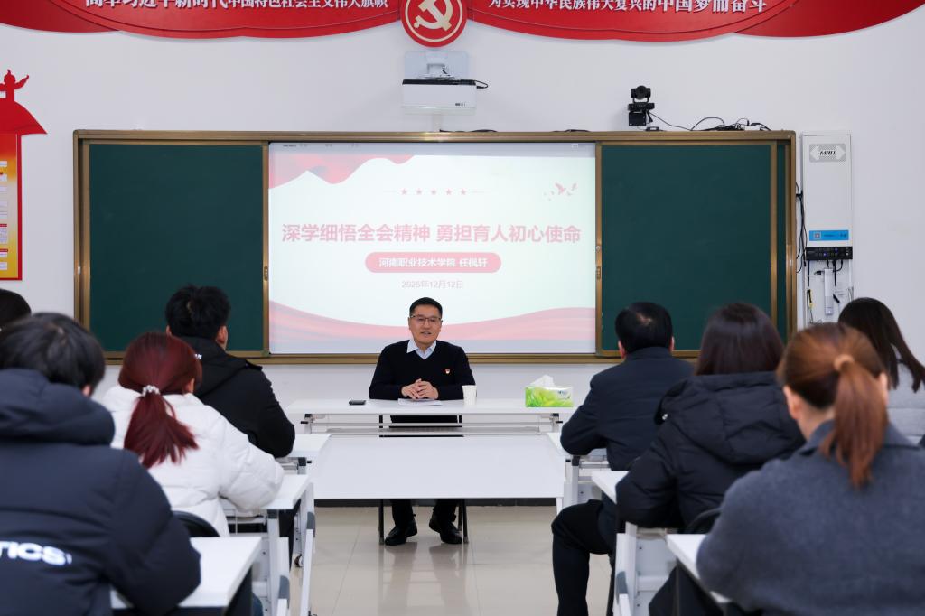 任枫轩指出,党的二十届四中全会是在“十四五”收官、“十五五”蓝图即将谋划的关键节点召开的一次重要会议。会议审议通过的《中共中央关于制定国民经济和社会发展第十五个五年规划的建议》,是指导未来五年发展的重要纲领性文件。全体师生要深刻领会、准确把握全会精神,将其作为当前和今后一个时期的重大政治任务。