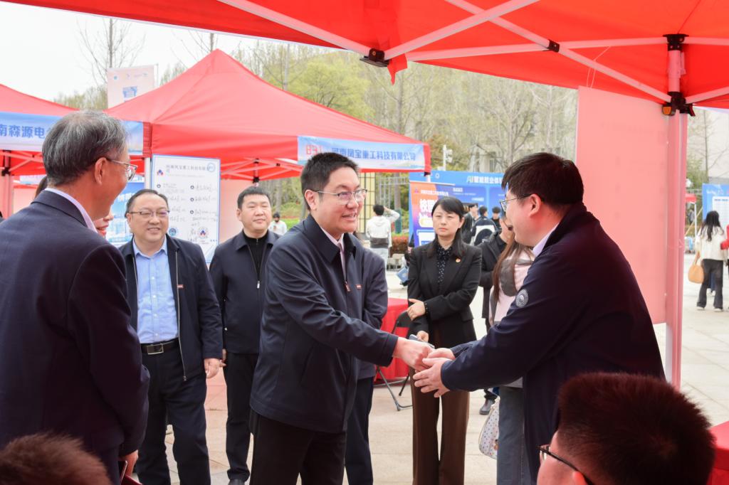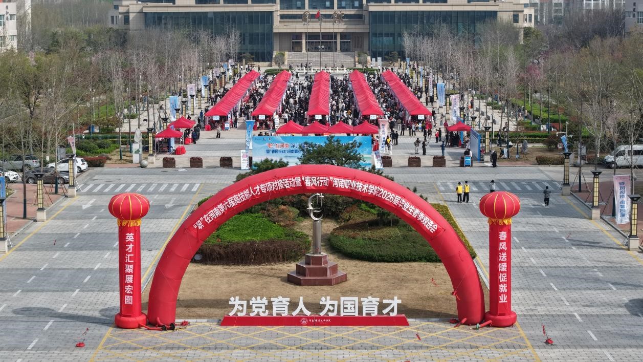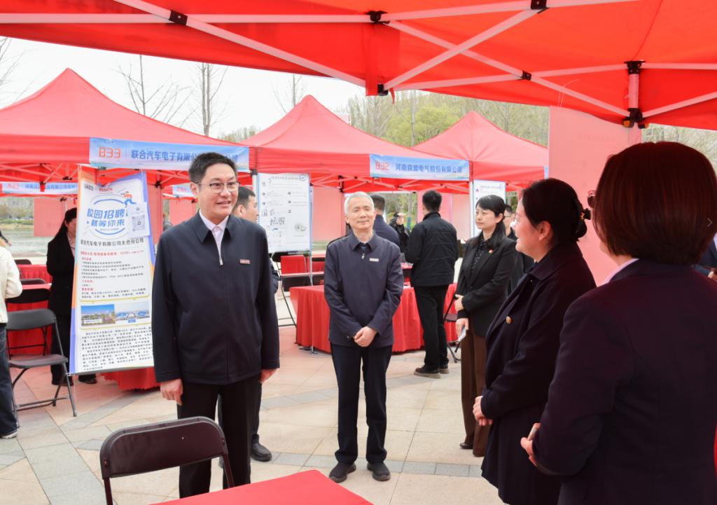 3月26日,学校联合河南省就业创业服务中心举办的河南职业技术学院2026届毕业生春季双选会暨“职”在河南第六届高技能人才专项对接活动在明湖广场举行。学校党委书记厉励,党委委员、纪委书记盛兴文,党委委员、副校长鲁冬以及河南省就业创业服务中心主任陈凯,副主任崔秀池亲临现场指导。