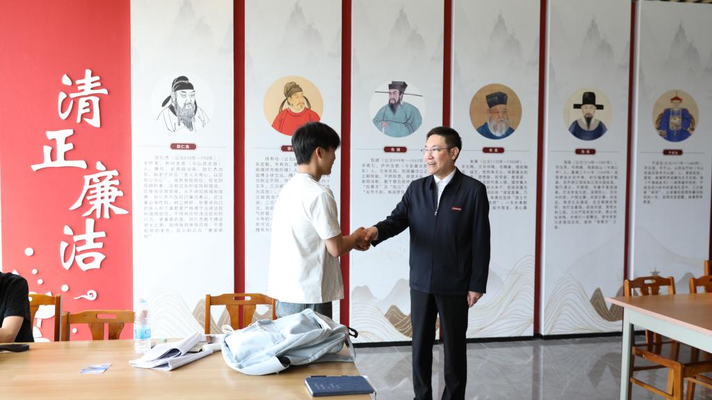 在图书馆,厉励实地查看场馆开放、消防安全及学习环境,与正在埋头学习的留校学生亲切交流,仔细询问学生的学习计划、体育锻炼、日常生活等情况,并征求同学们对学校教学管理、服务保障等方面的意见建议,勉励他们珍惜青春时光,勤奋学习,强健体魄,快乐生活,同时叮嘱图书馆负责同志,要持续优化服务保障,加强安全巡查,为学生营造安全有序、温馨舒适的学习环境。
