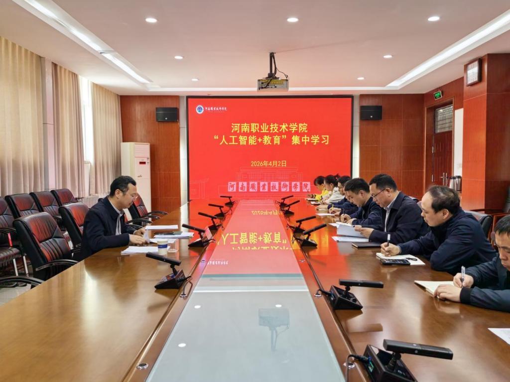 会上,朱永宽领学了2025-2026年人工智能教育领域国家及省级系列政策文件,重点解读了《教育部等九部门关于加快推进教育数字化的意见》、教育部在国家教育数字化战略行动2026年部署会上对“人工智能+教育”的工作要求,以及河南省《“人工智能+教育”三年行动计划(2025—2027年)》等核心内容,并梳理了当前职业教育数字化、智能化转型的政策导向与重点任务。在领学过程中,朱永宽以AI生成视频为切入点,围绕人工智能对现有岗位的影响与参会人员展开交流,引导全体人员深入思考人工智能技术对职业教育领域带来的变革与影响。