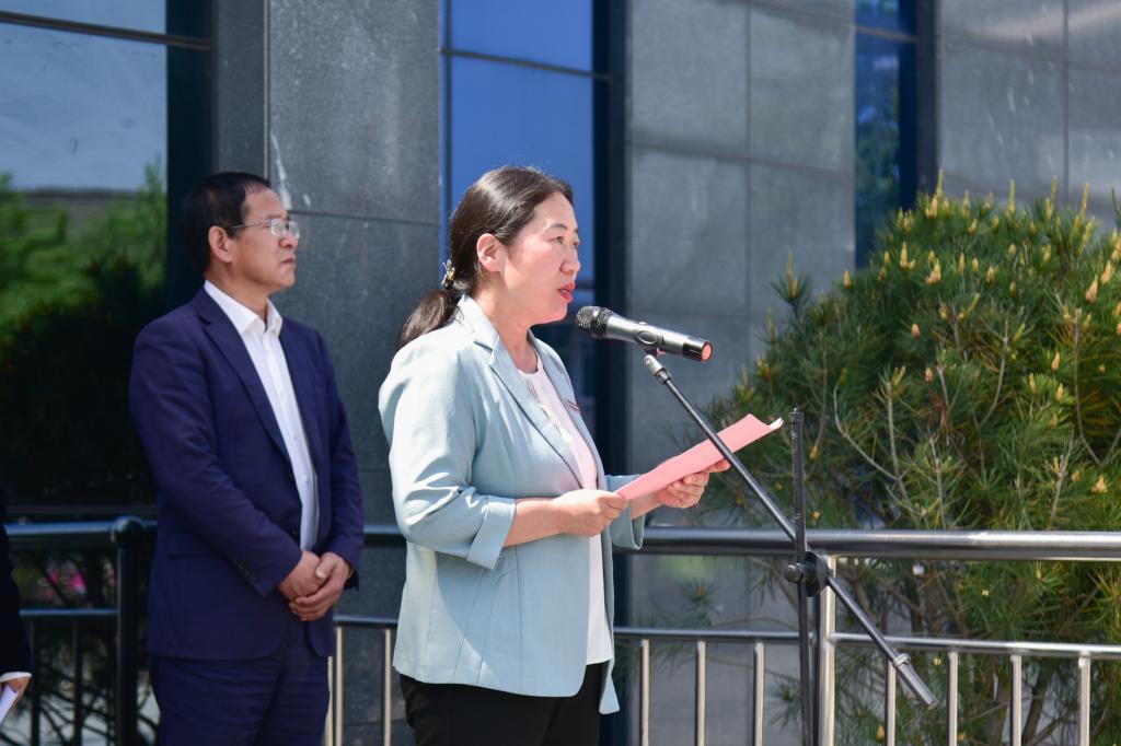 田华在致辞中代表学校党委,向确山县委、县政府及参与共建各方领导和师生代表表示衷心感谢。她指出,与确山竹沟革命纪念馆共建“大思政课”实践教学基地,是学校深入贯彻习近平总书记关于“大思政课”重要指示精神,推动“思政小课堂”融入“社会大课堂”的生动实践,也是学校深化“大思政”铸魂工程、拓展红色育人阵地的务实举措。确山竹沟是中原抗战指挥中枢、红色中原精神地标,校馆双方将以此次签约揭牌为新起点,共同把红色资源转化为育人资源、把革命旧址转化为育人阵地、把英雄事迹转化为育人教材,深挖竹沟精神时代价值与育人功能,推动协同育人走深走实,引导学生走进历史现场、感悟初心使命、传承红色基因,坚定听党话、跟党走的信念与决心,切实把学习成果转化为奋进实干的行动力,在强国建设、民族复兴新征程上彰显河职学子的青春担当。