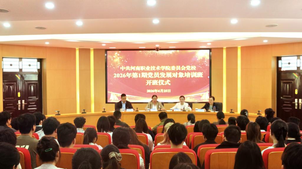 4月25日上午,中共河南职业技术学院委员会党校2026年第1期党员发展对象培训班在勤业楼239会议室开班。校党委副书记、工会主席田华出席开班仪式并作动员讲话。学校各基层党组织师生党员发展对象共121人参加培训。开班仪式由校党委委员、党委组织部部长杨华主持。