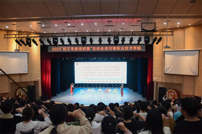 本网讯 5月11日下午,由河南省卫生健康委员会、河南省教育厅主办,医药卫生报社和河南职院承办的2023年河南省“防艾专家进校园”第36站主题活动在学校音乐厅举行。活动以网络直播、空中课堂为载体,采取专家访谈、有奖问答、防艾宣誓、文艺表演等形式,通过线上线下方式同时进行,共9.4万人次在线观看。