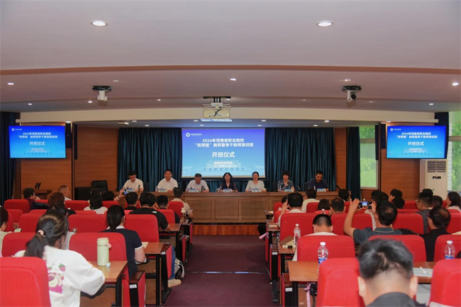 本网讯 7月8日上午,由河南省教育厅主办、河南职院承办的2024年河南省职业院校“双师型”教师暨骨干教师培训班,在河南职业技术学院行政楼238会议室开班。河南省教育厅职成教处副处长任远、校长夏新颜出席开班仪式并讲话。仪式由副校长李玉峰主持。