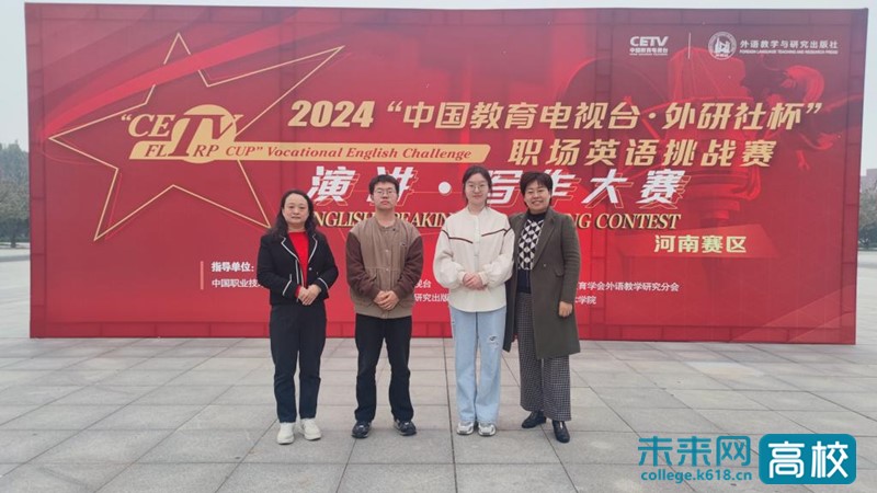 10月26日至27日,“中国教育电视台·外研社杯”职场英语挑战赛演讲·写作大赛(河南赛区)在鹤壁举行。河南职业技术学院国际教育学院黄圣涵同学获演讲大赛一等奖,电子与物联网学院付佳仪和财经管理学院卫己元两名同学分获写作大赛一等奖;基础教学部刘婷婷、吴希博和崔艳霞等三位教师分获指导教师一等奖。