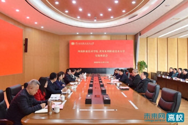12月11日上午,河南职业技术学院党委书记厉励带队赴黄河水利职业技术大学开展考察学习。河南职业技术学院领导田华、肖珑、任枫轩以及党政办公室、党委组织部、党委宣传部、发展规划处、教务处、科技开发处、图书馆等部门负责同志一同参加。黄河水利职业技术大学党委副书记、校长胡昊,党委副书记、工会主席杨士恒,党委委员、副校长朱焕立、周志琦,党委委员、纪委书记刘许亮及该校相关职能部门负责同志陪同考察并参加座谈交流。
