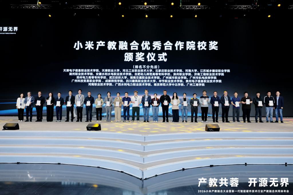 4月11日至12日,2026小米产教融合大会暨新一代智能硬件技术行业产教融合共同体年会在四川成都召开。大会现场举行了优秀合作院校颁奖仪式,河南职业技术学院凭借在产教融合领域的突出表现,获评“小米产教融合优秀合作院校”荣誉称号。