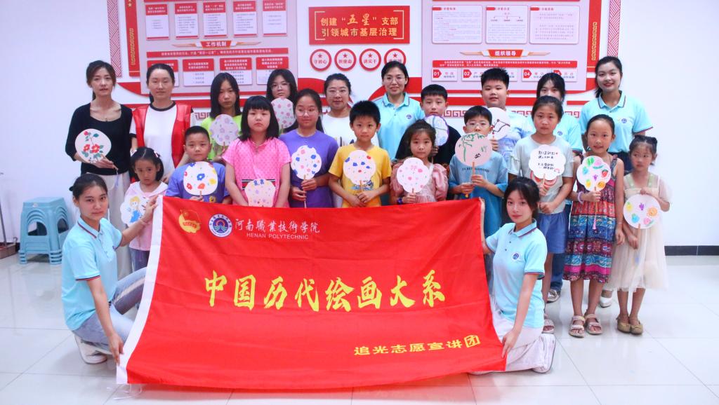 “中国历代绘画大系”暑期社会实践活动,以青年人视角生动讲述了中国绘画史的文化脉络与钧瓷文化的精神传承,将美育课堂搬进社区,将传统文化宣传融入媒体,切实将“三下乡”工作走深走实。队员们纷纷表示,要积极践行“小我融入大我、青春献给祖国”的责任担当,以更加饱满的热情和更加坚定的信念,投入到学习工作中去,为实现中华民族伟大复兴的中国梦贡献青春力量(供稿:李青云,审稿:田景娜)