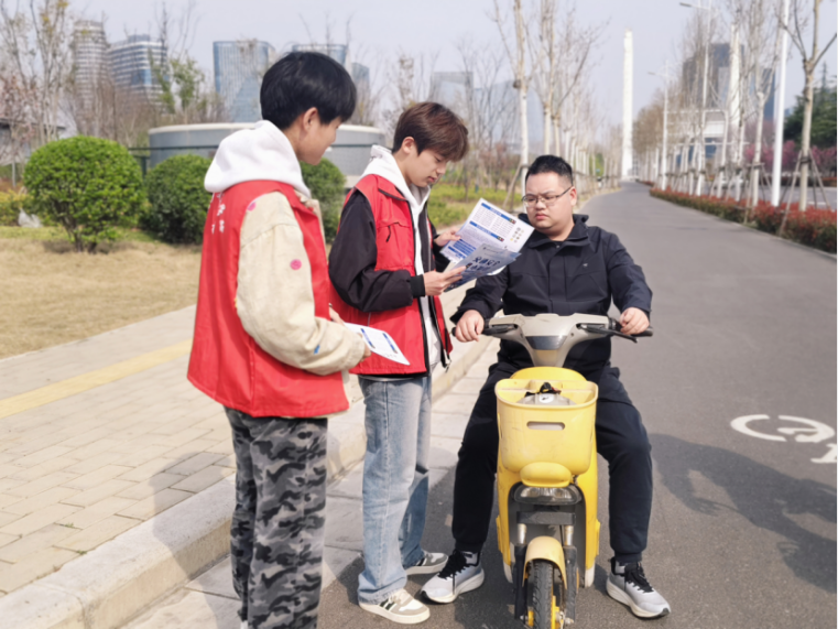 活动当天,学院师生志愿服务队在校园周边主要路口、临近商圈路段开展志愿服务活动。针对校园周边车流、人流密集的特点,志愿者们有序引导非机动车与机动车分道通行,耐心劝导电动车骑乘人员佩戴安全头盔,纠正非机动车逆行等不文明交通行为。同时,志愿者向过往非机动车驾驶人和行人发放交通安全宣传手册,结合日常出行中的典型案例,细致讲解交通法规,重点普及电动车安全出行知识,从车速控制、车辆规范停放、雨天出行防护等方面进行详细宣传,将交通安全理念传递到每一位路人心中。志愿者们耐心细致的服务,赢得了市民的一致好评。