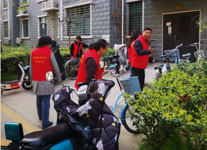 活动现场,大家分工明确、配合默契。一组志愿者负责部分道路卫生,逐段清理路面烟头、纸屑等杂物,确保环境整洁美观。另一组志愿者针对小区内部分电动车、自行车乱停乱放现象,耐心搬移车辆,规范摆放到指定区域,确保通道畅通、环境有序。